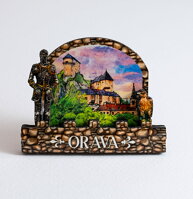 Magnetka sa skladá z 2 dielov: 1. kupola s grafikou hradu a 2. hradby s rytierom a orlom, ktorá má zároveň 2 vrstvy. Diely sa dajú položiť na seba. Vrchný diel prekrýva text - zaujímavosť o hrade. Obidva diely sú magnetické.