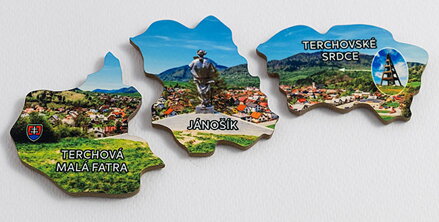 Magnetky z MDF drevenej dosky, hrúbka 3 mm. Lesklá fotopotlač. Na magnetku možno vytlačiť fotografie, kreslenú alebo ilustrovanú grafiku, texty alebo logá podľa nášho alebo vášho návrhu.